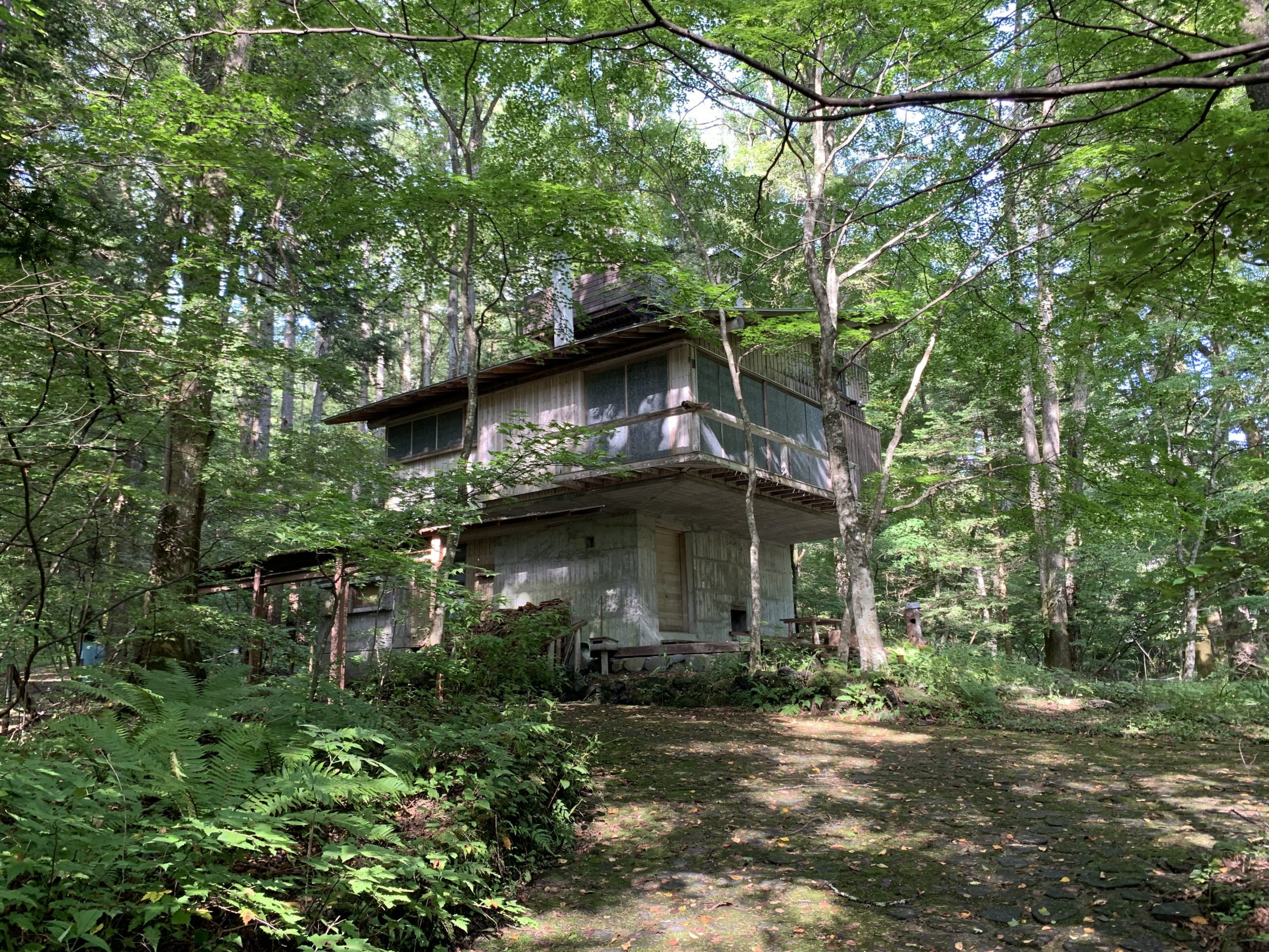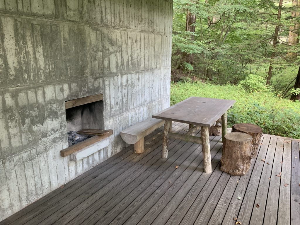 軽井沢の山荘の半外部空間。ここに座るだけで自然と一体になれる。気持ちいい。