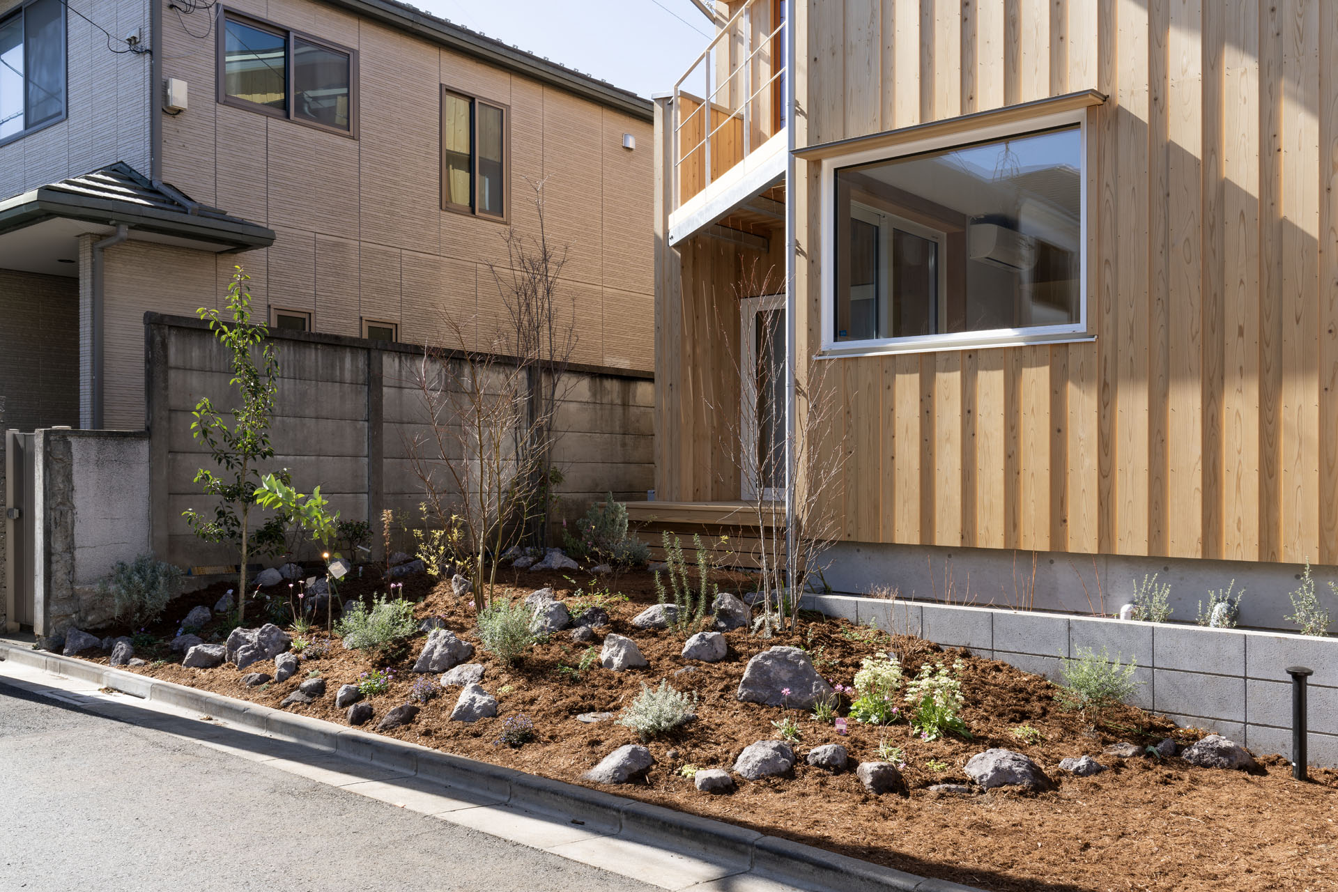 お庭の植物はよく育ち、都内では珍しく緑豊かな表情のお宅となっています。