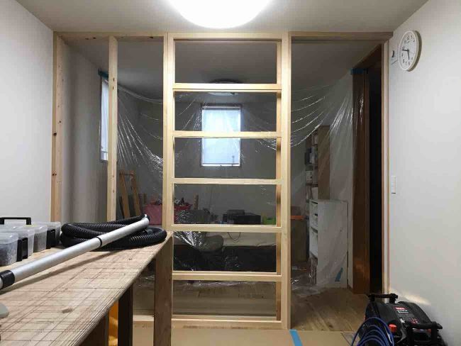 壁をつくる間仕切りの完成写真は撮っておらず・・・仕上がりはやどりの施工事例を参考にしてください。