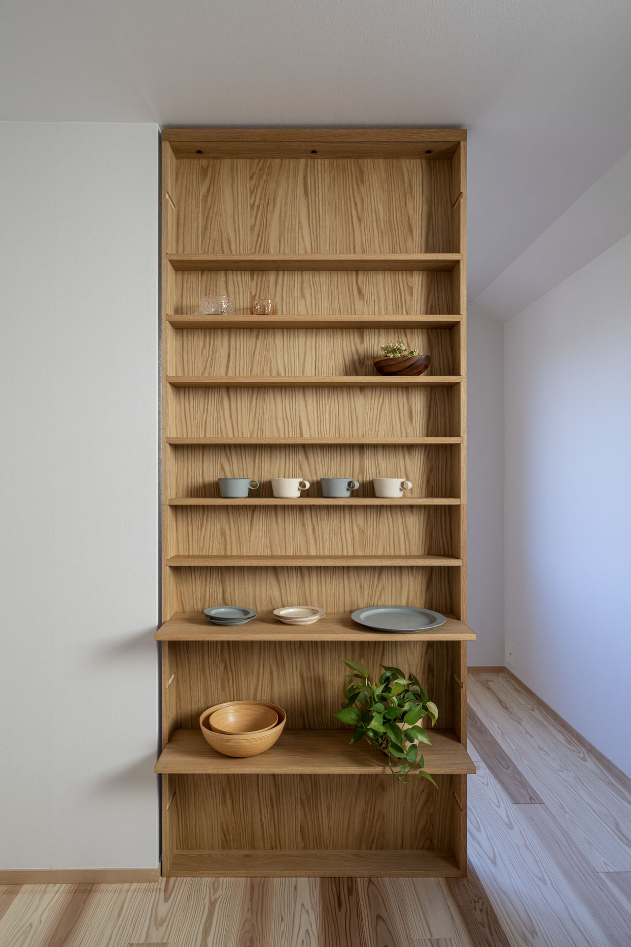 材種:ナラ材 既存の壁をすこし延長するような使い方もできます。