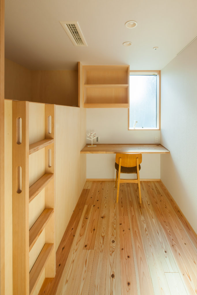 新築時に計画したものですが、間仕切りに造作2段ベットをつくったこともあります。