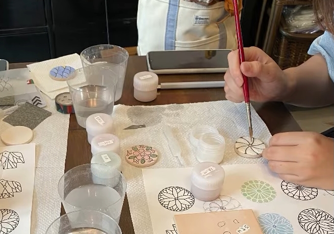 今回体験したのは、イスラム諸国からスペインに伝わった絵付け技法で、細かなパターンが組み合わさって、まるでモザイクタイルのような表情をつくり出すのが特徴です。