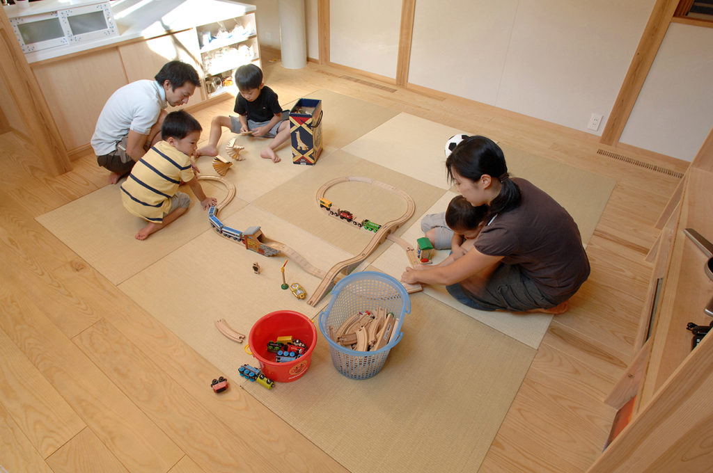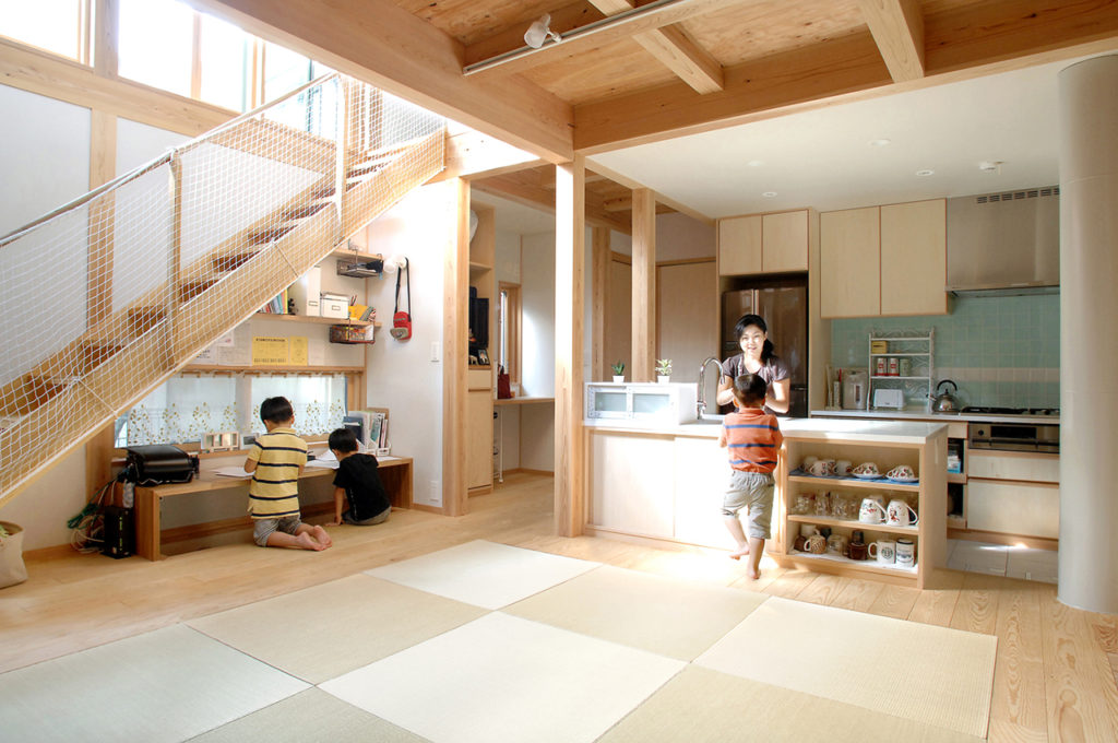 一段低くすることで、畳リビングと目線をあわせて、会話を楽しめるように考慮した