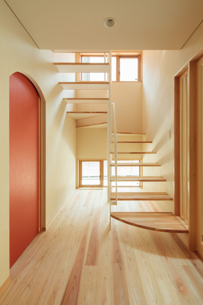3Fには広がりを感じる勾配天井の寝室と、将来間仕切ることを想定した子供室があります。開放的な階段が縦の空間をつなげて、どこにいても、家族の気配を感じることができる、笑い声が響くお住まいとなりました。