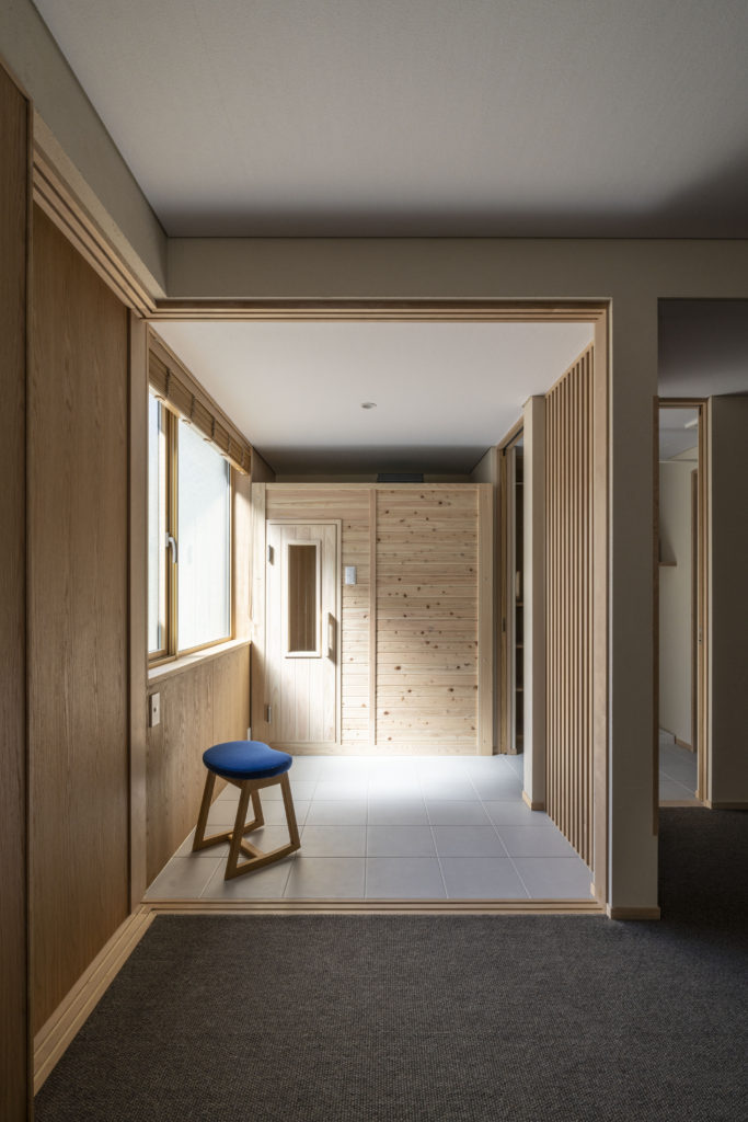 リモートワークが捗る書斎は部屋として完全に仕切らず、上部に開口を設け、2階全体にゆるくつながりを感じられるように計画しました。