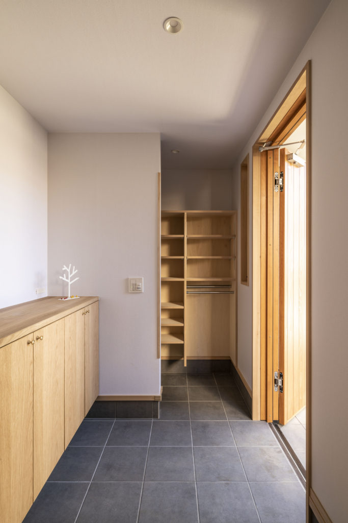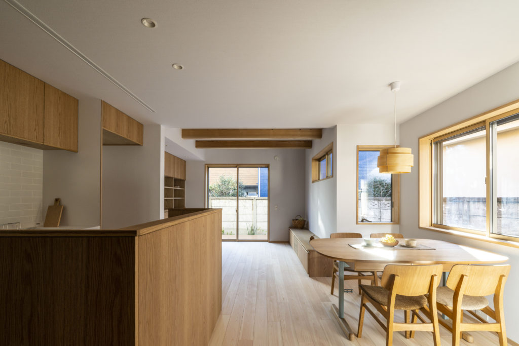 お客さまと歩みをそろえながら、これからの暮らしを想像しながら、お打合せをするのがとても楽しい時間でした。現場にも沢山足を運んでいただき、地盤調査からお引渡しまで、家づくりの過程をとても愉しんでいただくことができました。やどり大工の技にも大変興味を示してくださり、現場ではいつも大工の仕事に興味芯々でした。勢いあまり石膏ボード運びまで体験することに…。そんな想いのたくさん詰まったお住まい、これからは新しく誕生したお子様と共に素敵な暮らしを送って頂ければと思います。