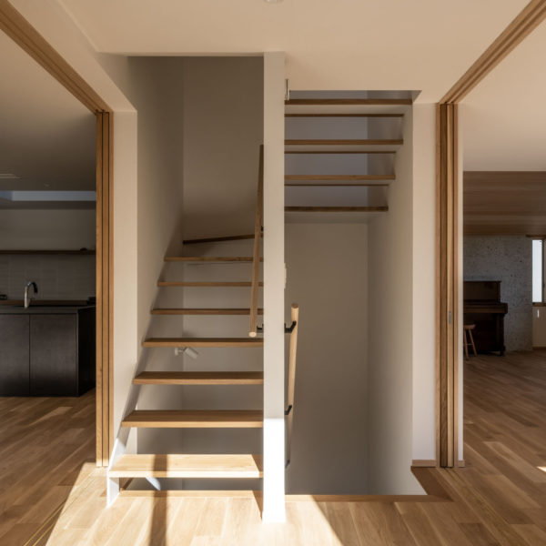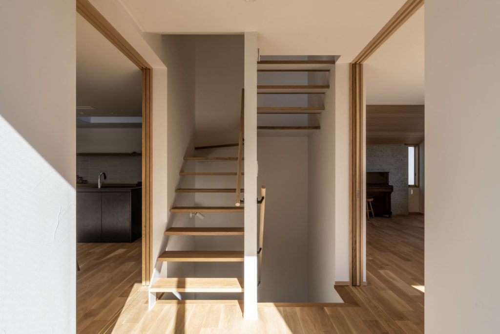 3階建ての内部空間は中央に階段が配置され、各階左右の広々としたお部屋にアクセスできます。